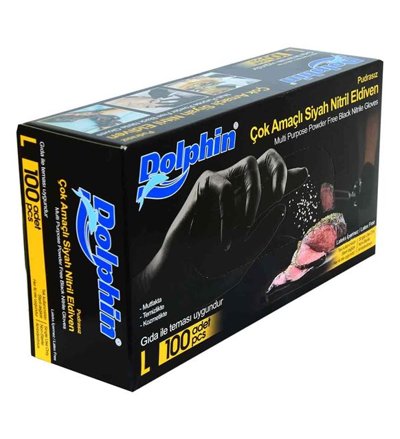 Dolphin Çok Amaçlı Gıdaya Uygun Siyah Nitril Eldiven 100'LÜ - Large